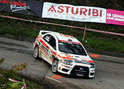 Sergio Fombona y Agustín Ramos con un Mitsubishi EVO X en el rallye Villa de Pravia.