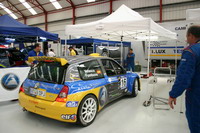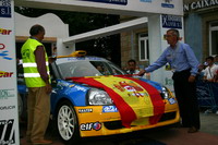 El Clio S1600 en el parque cerrado de la Plaza de Galicia. |