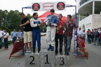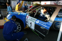 Sergio y Quique dejan el coche en el parque cerrado final. |